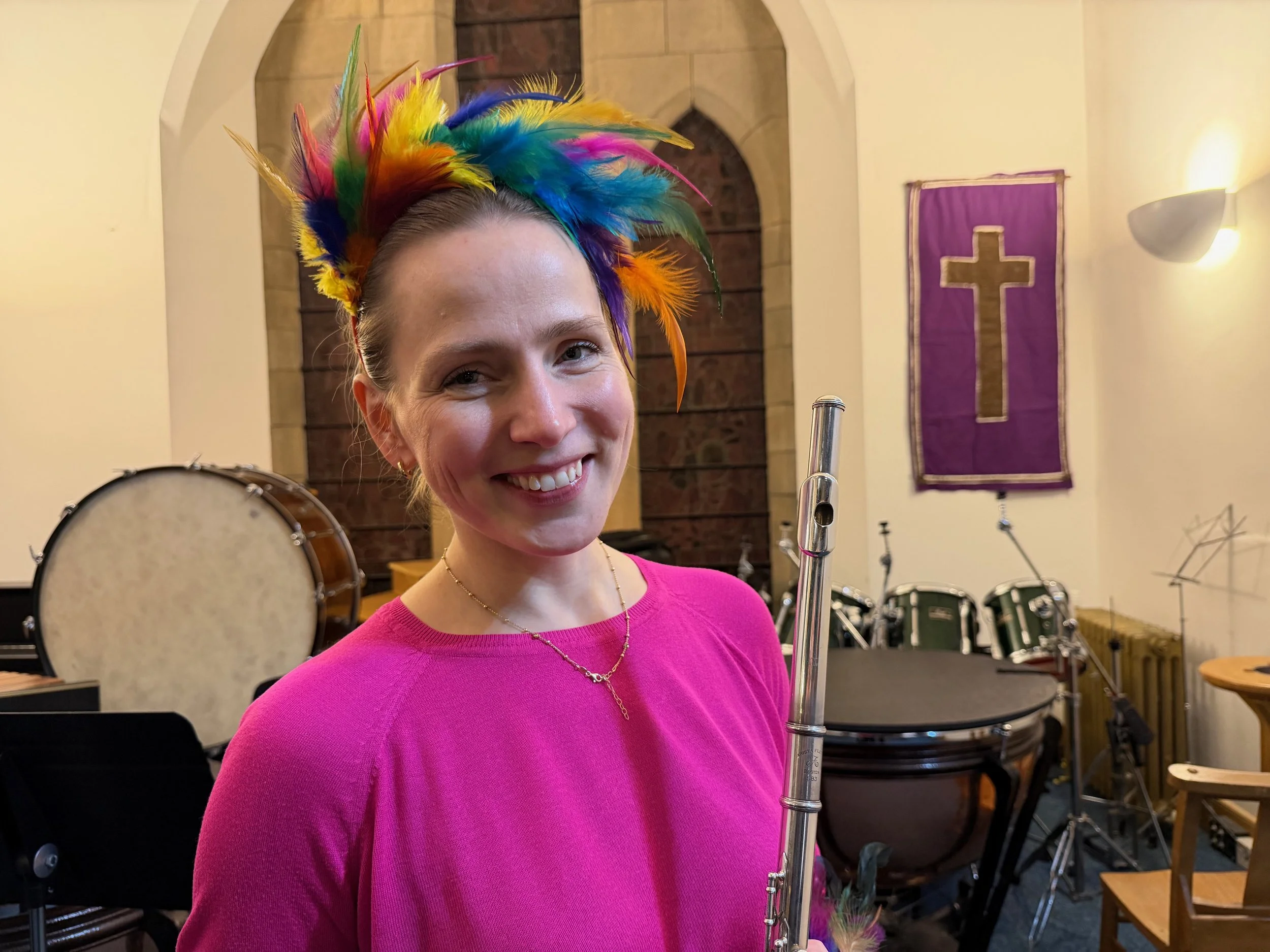 In the interval, I chat with a musician in bright pink top and plumaged headwear: flautist Renate Sokolovska. Her husband George Stevenson joins us; he’s a composer currently writing for the LPO. They live near Dalkeith. Around us there’s talk of East Lothian becoming a major centre for the arts.